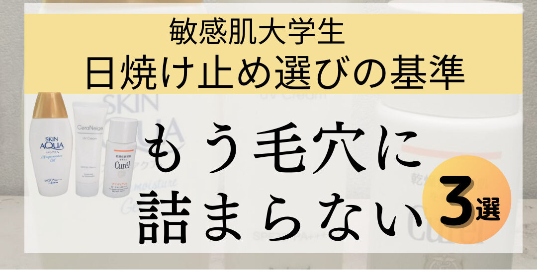 <日焼け止めをぬったらかゆくなる?>敏感肌大学生の日焼け止めを選ぶ基準3選!日焼け止めによる毛穴詰まりや肌荒れを解消!
