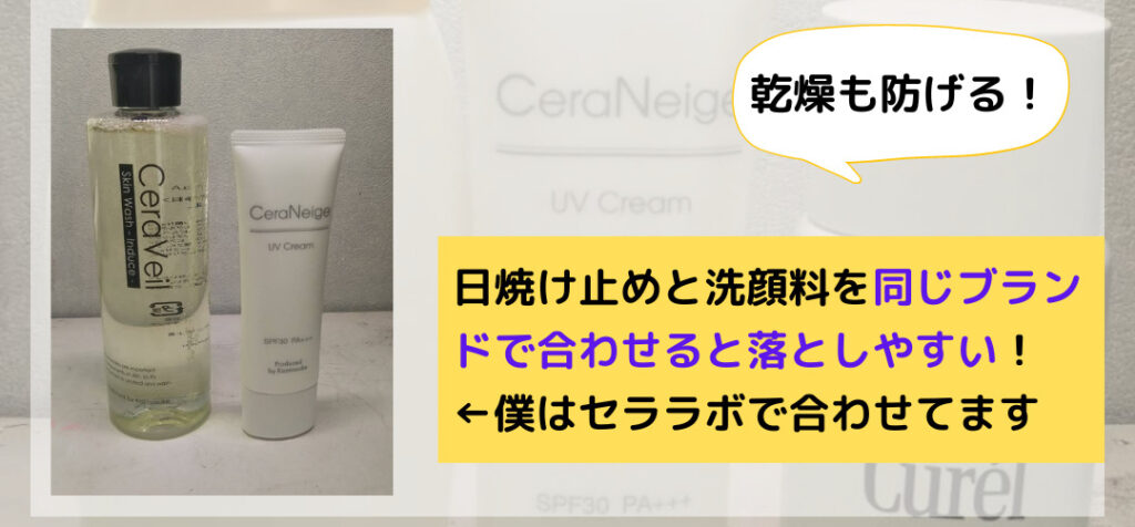 洗顔料と日焼け止めを同じブランドの商品にすると、相性がいいから落としやすくなるのでおすすめです!