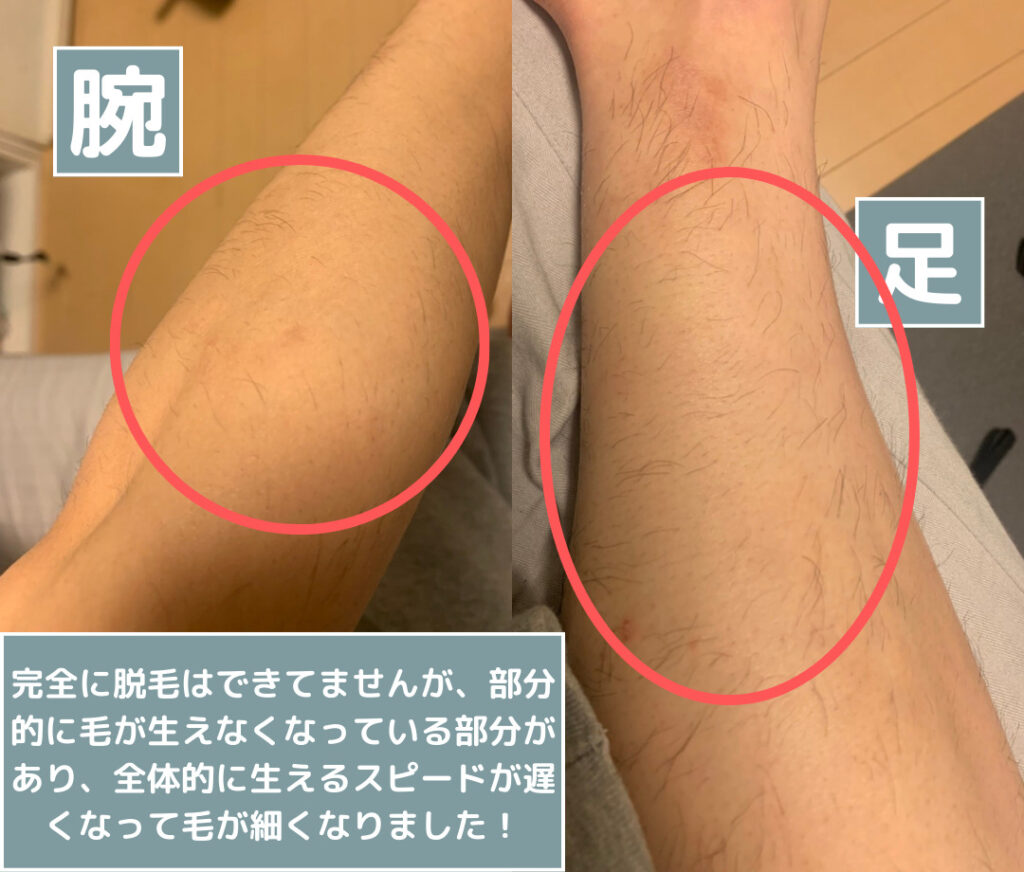 脇の写真は恥ずかしいので載せませんが、効果は腕・足と同じぐらいでやすいと感じました!