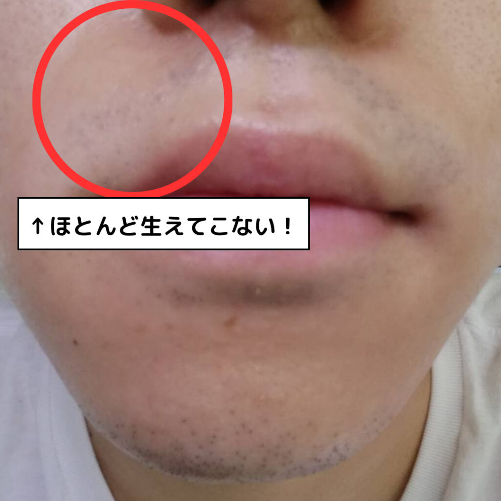 写真の赤丸で囲んだ部分はほとんど生えてこなくなりました!なぜか右側だけ効果がめっちゃでてますw