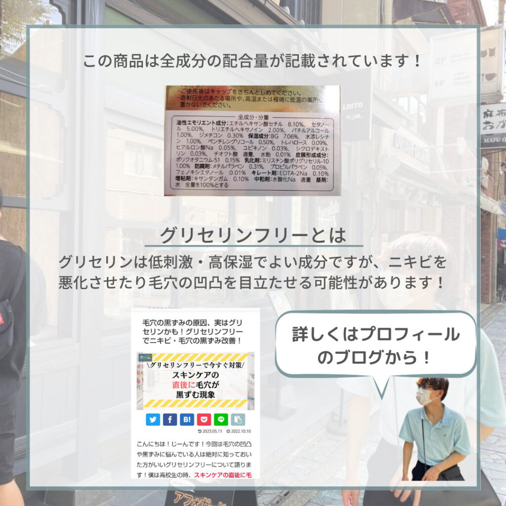 さて、最近グリセリンフリーが話題になってますよね!ぼくも毛穴が目立つのでグリセリンフリーのスキンケアを使っています!